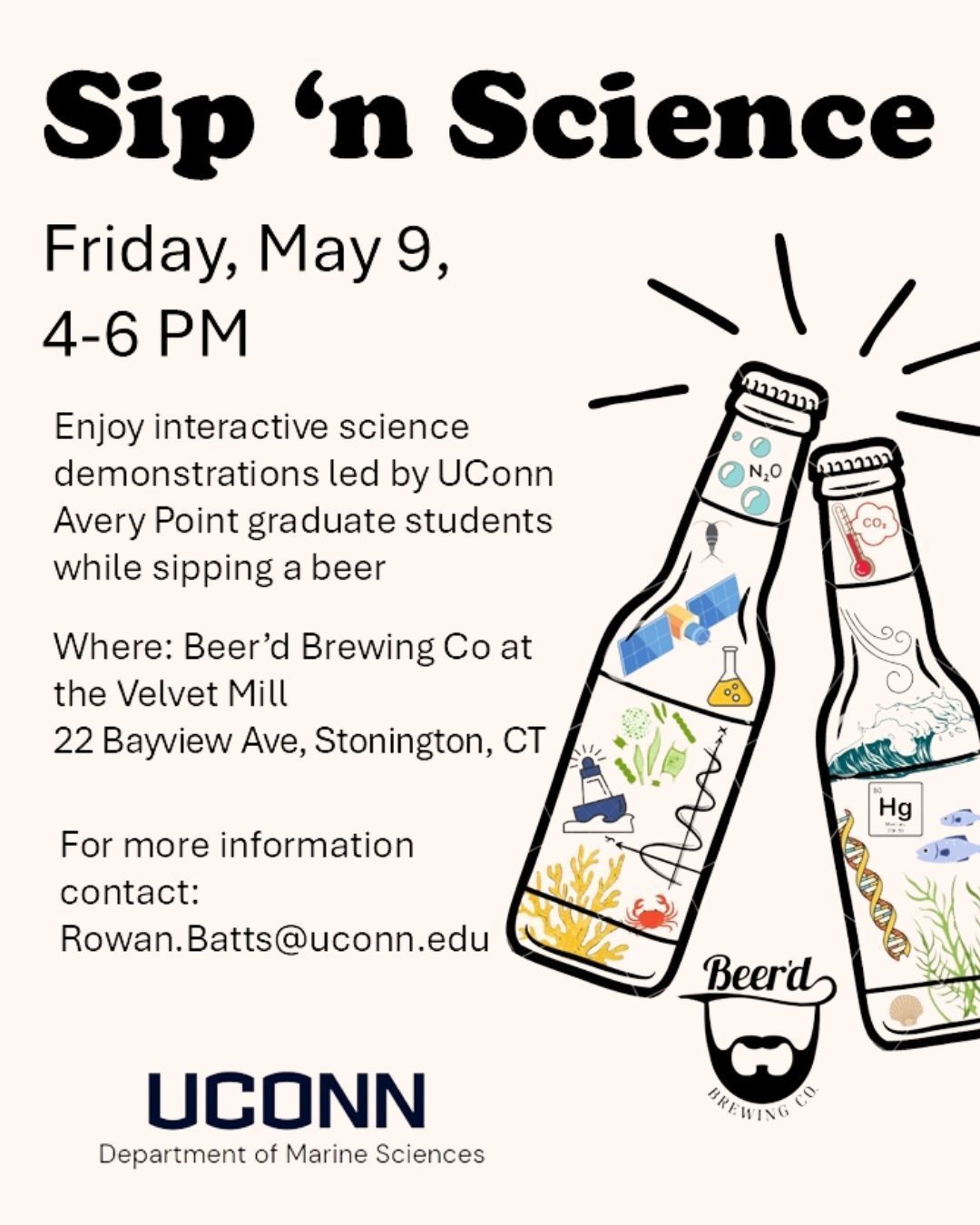 Sip n’ Science - Science demonstrations by UConn graduate students while sipping beer @ Beer’d Brewing at Velvet Mill, Stonington from 4-6pm